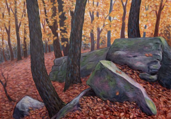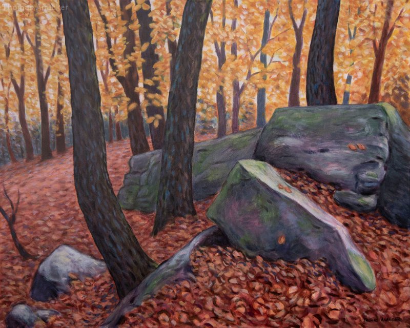 Felsen am Kalmit, PfalzRuby Beach, Washington StateUnter WasserDer verirrte FischDer AnflugWaldblumeRosa TunnelBlaue MalkisteDrei Welten, TriptychonMalpause Ölmalerei