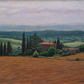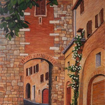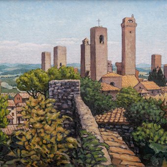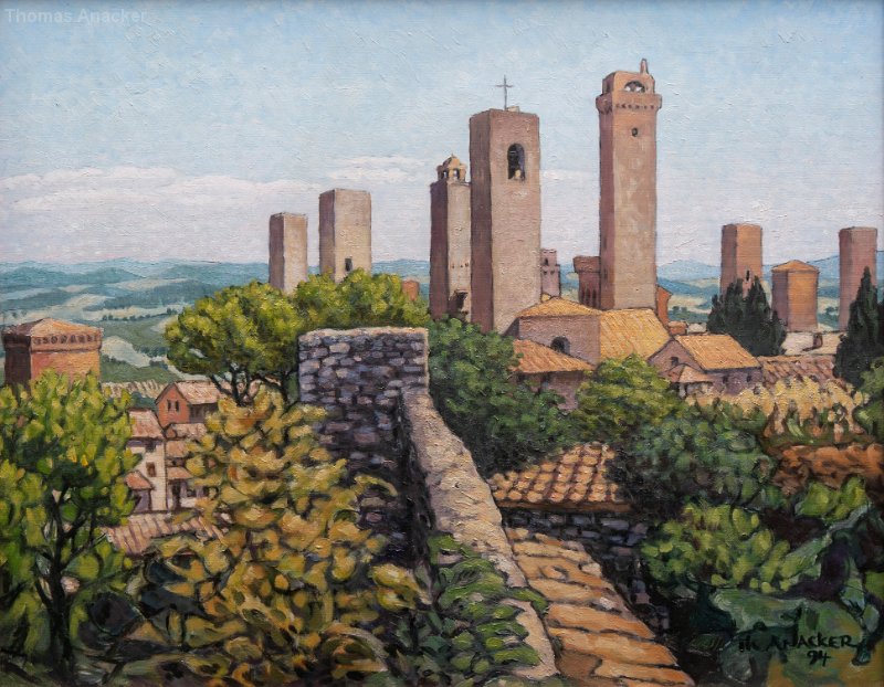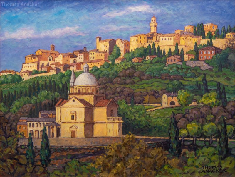 MontefollonicoVal di ChianaPienzaTempio di San Biagio, MontepulcianoAssisiFahnenschwenker, MontepulcianoSan GimignanoPorta de' Grassi, MontepulcianoZypresse, ToskanaLandschaft bei Montefollonico AcrylmalereiAquarelle